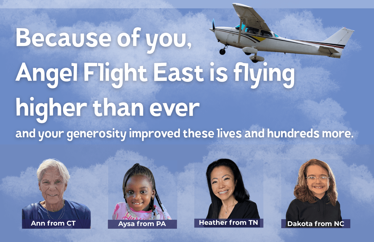 A gift to Angel Flight East, no matter the size, creates life-changing moments: helping a mom return home to share dinner with her family after treatment; giving a little boy the chance to live as normally as possible while receiving lifesaving care; and allowing a hardworking dad to reunite with his family, giving mom a much-needed break while he visits their hospitalized child.